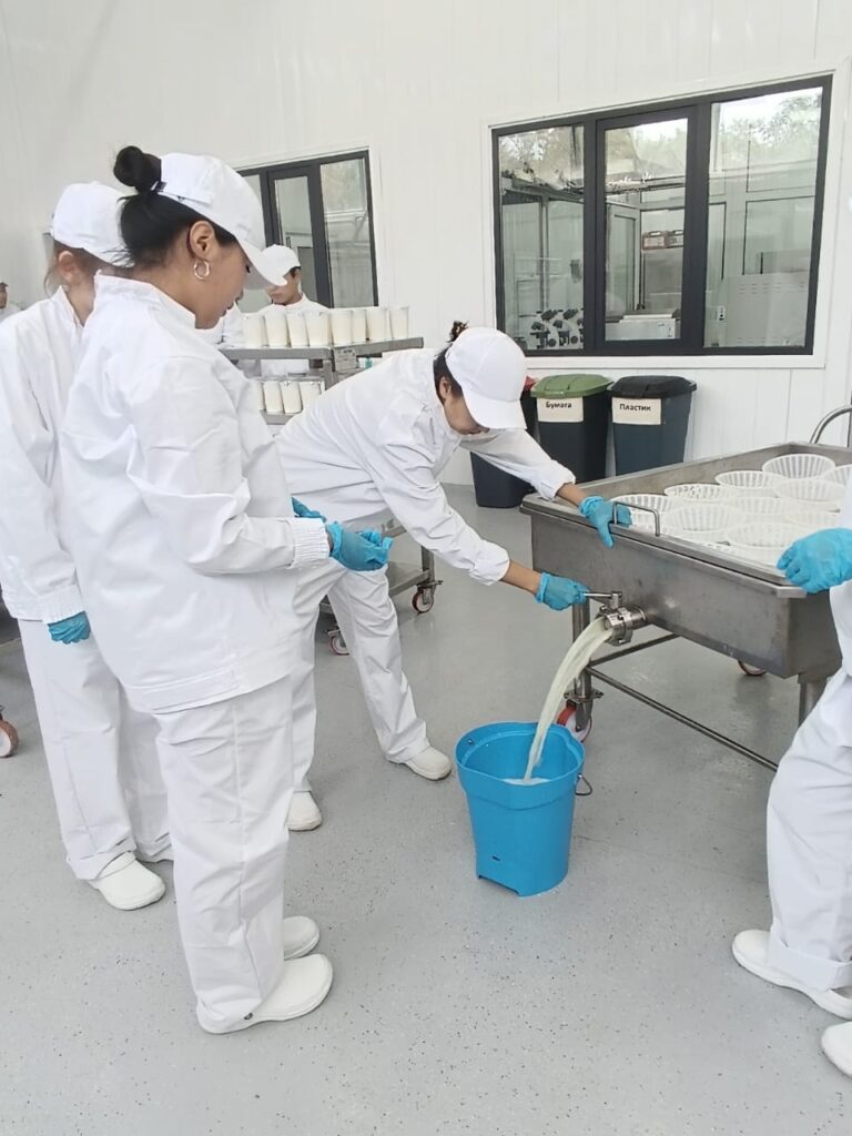 В данном учебно-производственном цехе студентами проводятся гостевые лекций партнеров работодателей ОсОО Жайыл Милк.